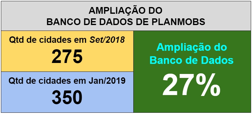 Entre 01 de outubro de 2018 e 20 de janeiro de 2019 foi realizado um esforço envolvendo pesquisa e divulgação para a inclusão de novas cidades e para a atualização das informações das cidades já constantes no Banco de Dados.