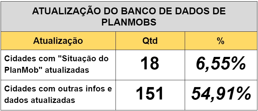 Com isso, alcançamos 10,34% das 3.342 cidades brasileiras que são obrigadas a possuir PlanMob, de acordo com a Política Nacional de Mobilidade Urbana.