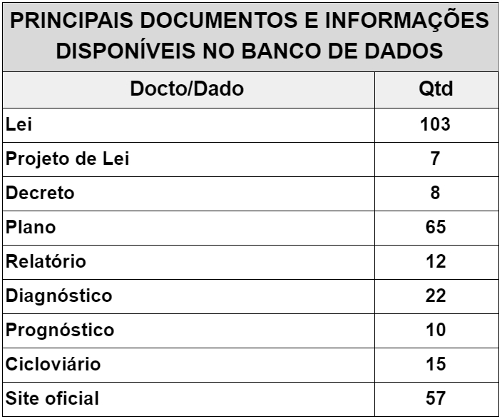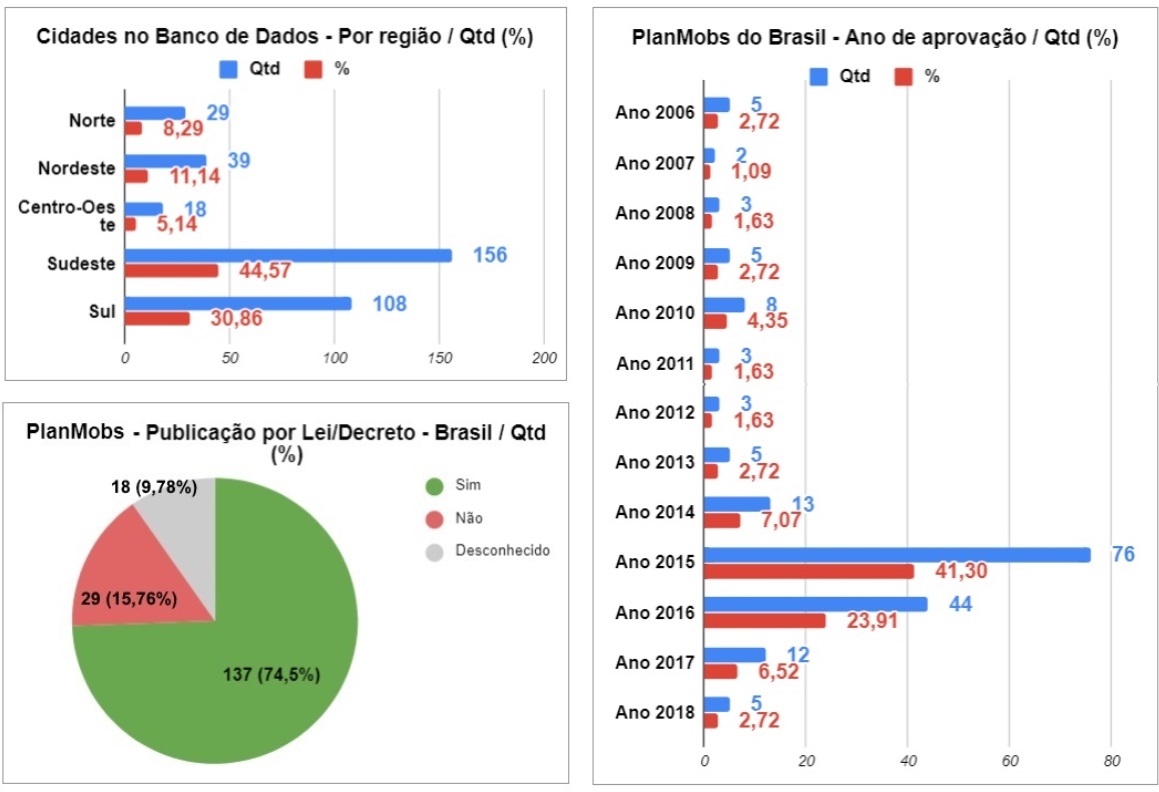 As informações coletadas das 350 cidades constantes no Banco de Dados de PlanMobs revelam o seguinte: