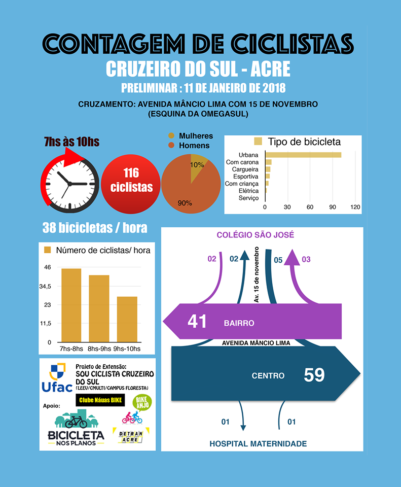 A equipe do projeto Bicicleta nos Planos esteve em Cruzeiro do Sul no começo de 2018 para discutir e assessorar sobre o Plano de Mobilidade Urbana da cidade e a atuação dos parceiros locais da campanha, o Clube Náuas Bike e a Universidade Federal do Acre (LEEV/CMULTI/CAMPUS FLORESTA).