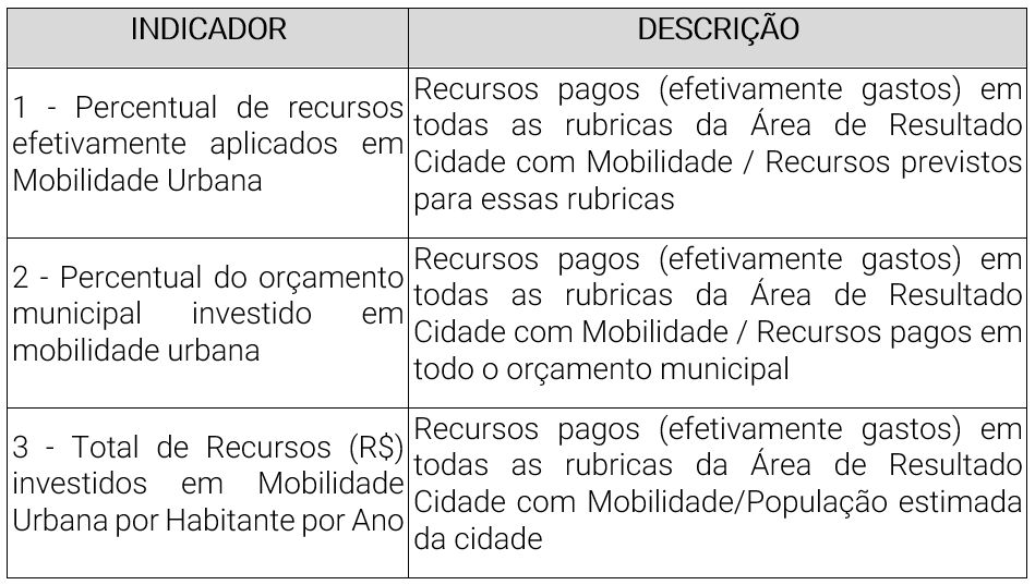 Indicadores de acompanhamento do orçamento de mobilidade urbana