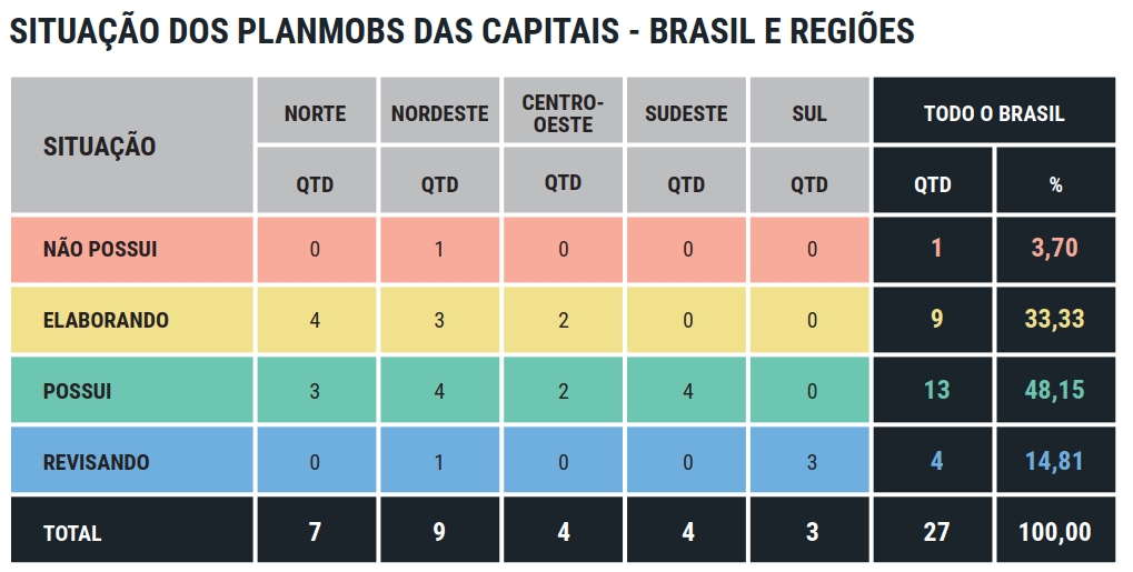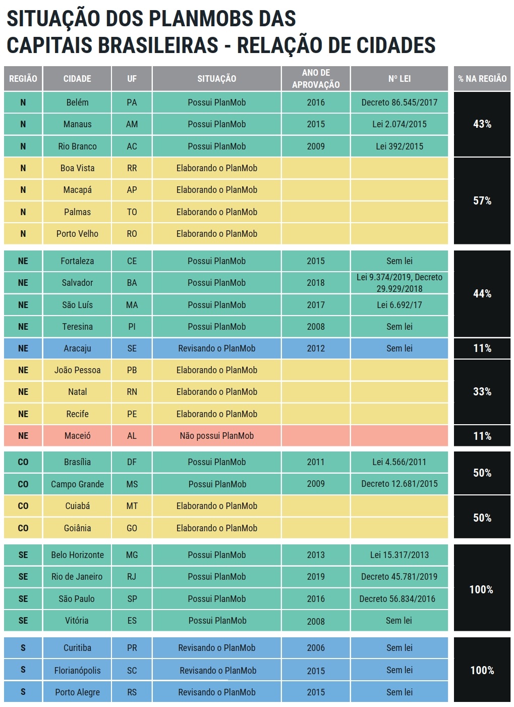 • O fato de apenas uma capital brasileira não possuir nem ter iniciado a elaboração do PlanMob demonstra que esta é uma agenda necessária e sem volta nos centros urbanos;